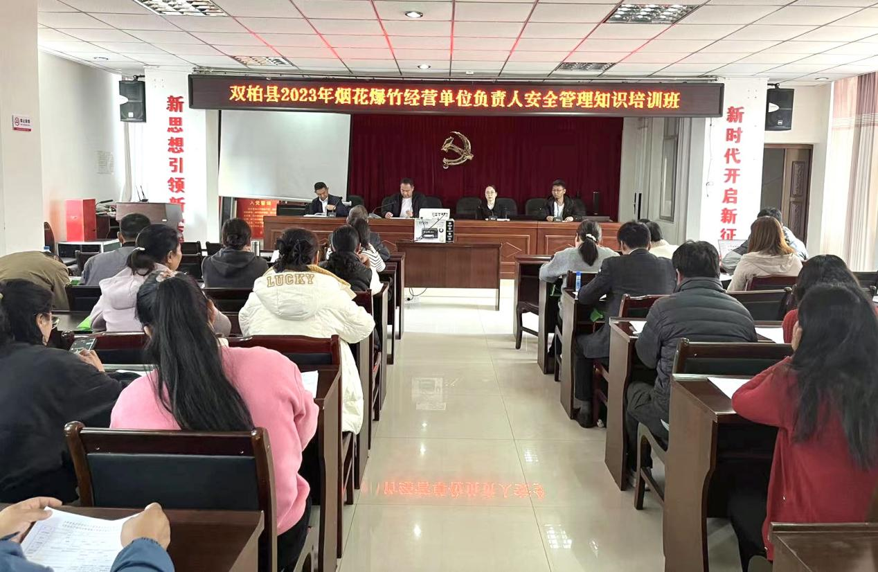 11月8日,双柏县应急管理局牵头组织举办全县烟花爆竹零售经营店主要负责人安全管理培训班,全县41名烟花爆竹批发企业和零售店主要负责人参加了本次培训。
