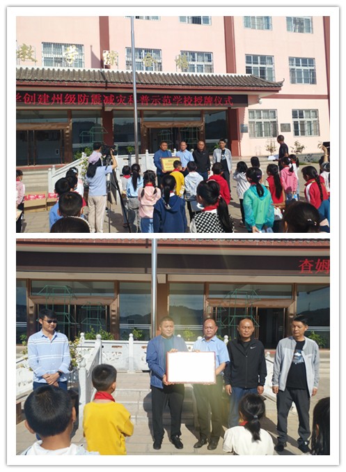 颁发州级防震减灾科普示范学校荣誉牌