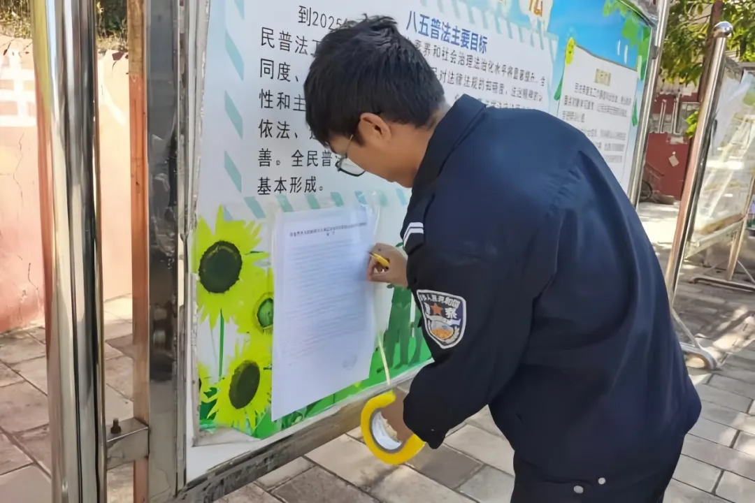 民警、辅警通过张贴《关于依法收缴非法枪爆等物品严厉打击涉枪涉爆等违法犯罪的通告》向广大居民宣传开展打击枪爆违法犯罪活动的重要意义,并通过现场讲解的方式,向辖区群众宣传打击整治枪爆违法犯罪的必要性以及私藏私制枪支弹药、爆炸物品的危害性,号召群众在做好自身安全防范的同时,积极参与到打击枪爆违法犯罪行动中,营造平安、稳定的社会氛围。
