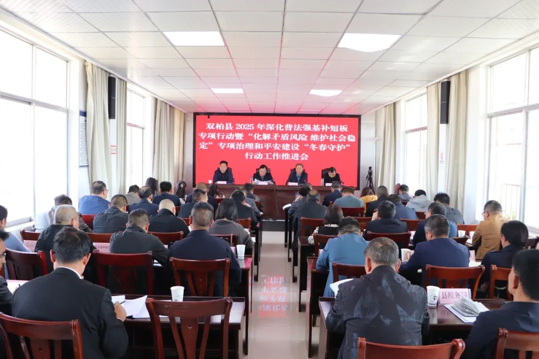 3月11日下午,双柏县2025年深化普法强基补短板专项行动暨“化解矛盾风险 维护社会稳定”专项治理、平安建设“冬春守护”行动工作推进会在县司法局四楼会议室召开,州委政法委三级调研员、州级专项普法第二工作队组长马庭文出席会议并安排2025年专项普法工作,县委常委、县委政法委书记张平礼主持会议并讲话,县领导陈发喜、高健出席会议。